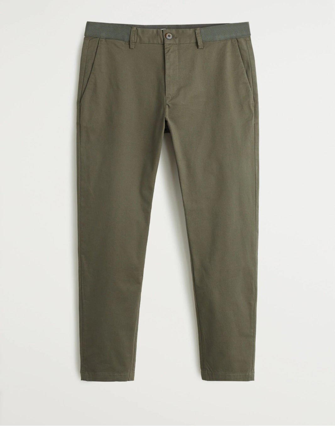 Slim fit. Sustainable cotton fabric. 3-ply fabric with greater durability made by the Kurabo fabric company. Garment dye. Loops. Zip and one button fastening. Two side pockets. Two welt pockets on the back. Coin pocket.